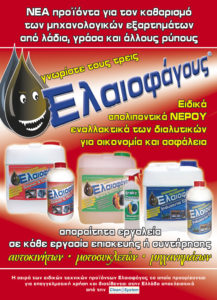 Eπικοινωνήστε σήμερα με τον Αντιπρόσωπό μας για Δωρεάν δοκιμή του πλυντηρίου, και του υγρού καθαρισμού, ΕΛΑΙΟΦΑΓΟΣ Cleaner & Degreaser.